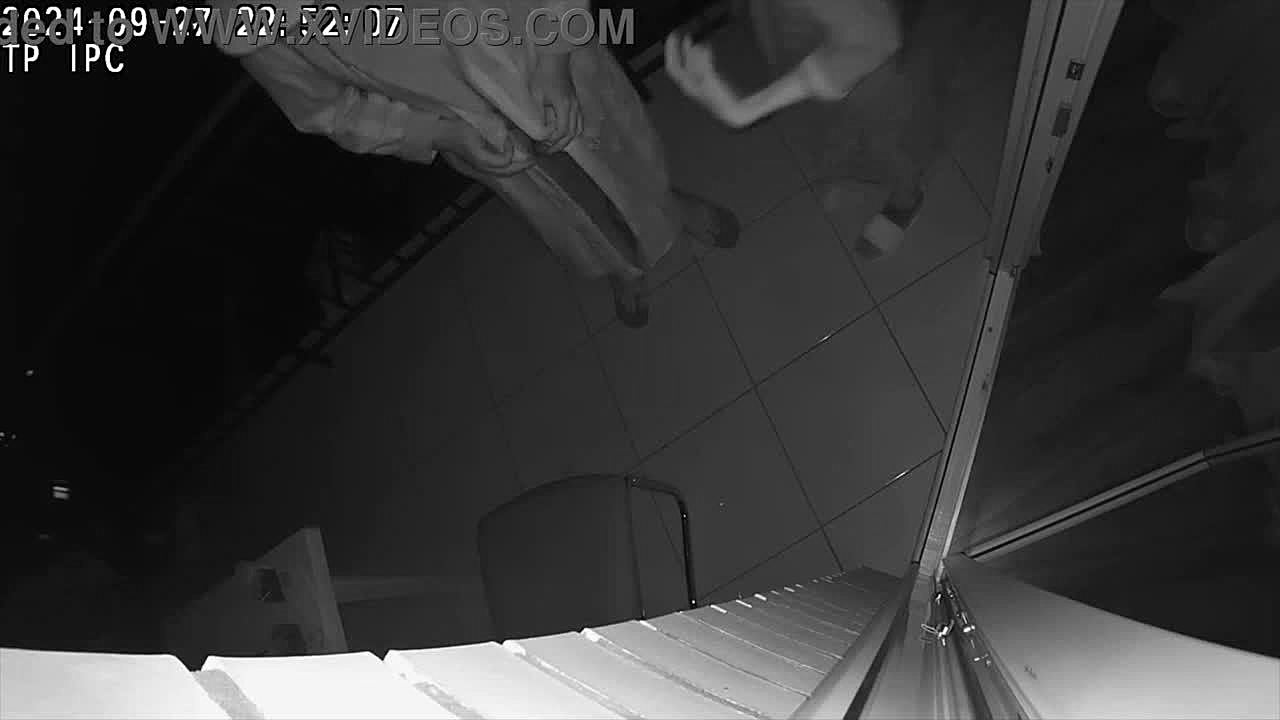 Cheating wife and lover slam hard anal in toilet while husband works