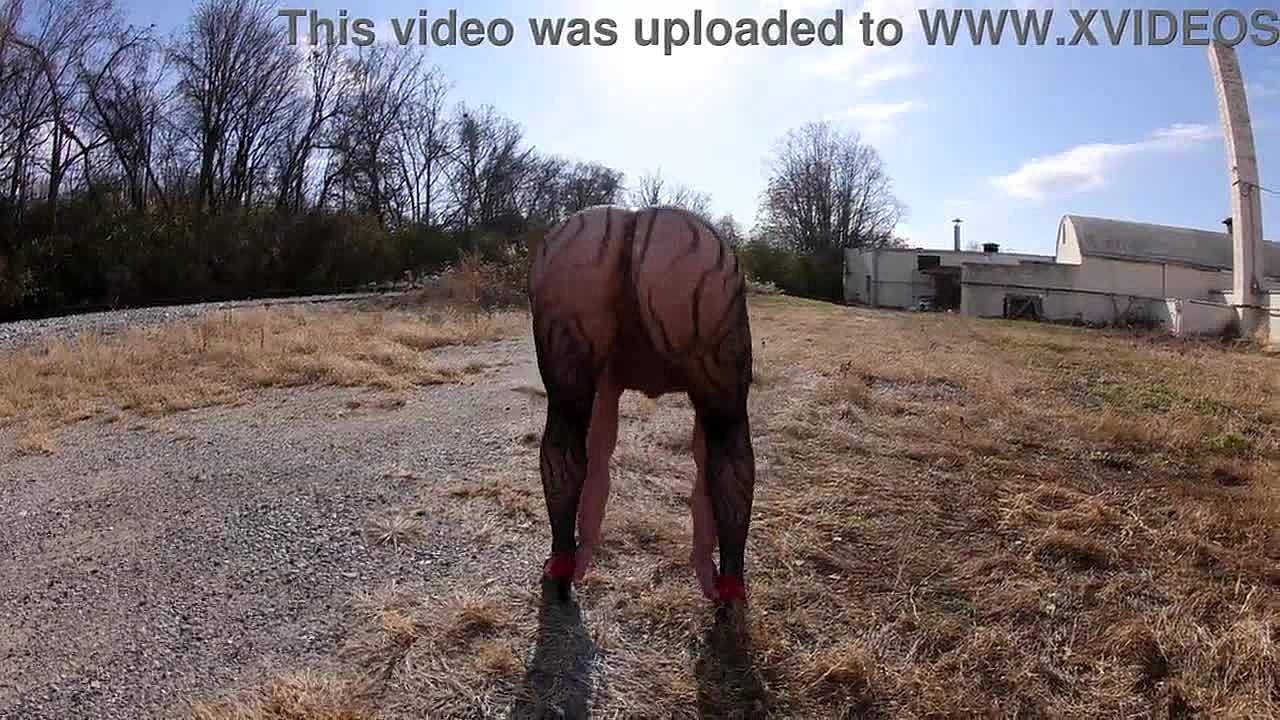 topless with suspenders and micro skirt flashing my petite ass in public streets 🐰😏
