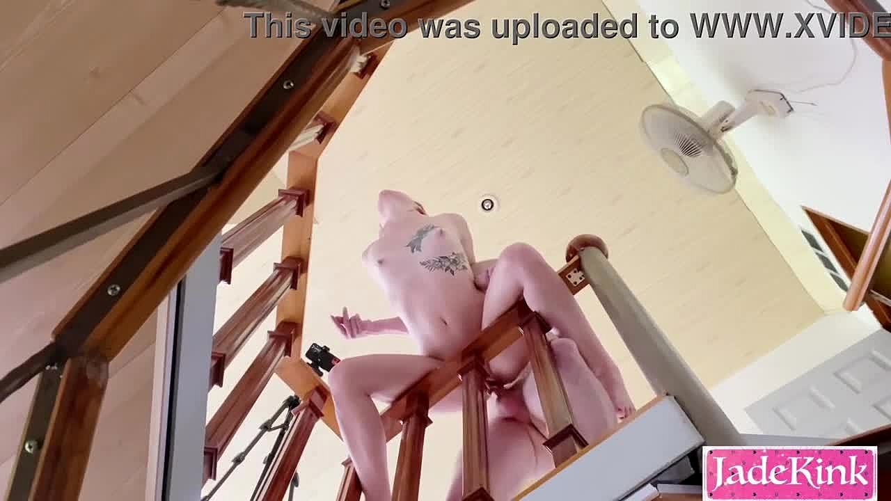 Oh man, this kinky couple's takin' huge risks fuckin' like crazy on the staircase with bondage and rough domination