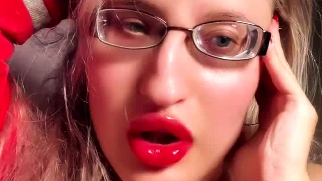 Babe with red lipstick gives sensual blowjob and swallows cum