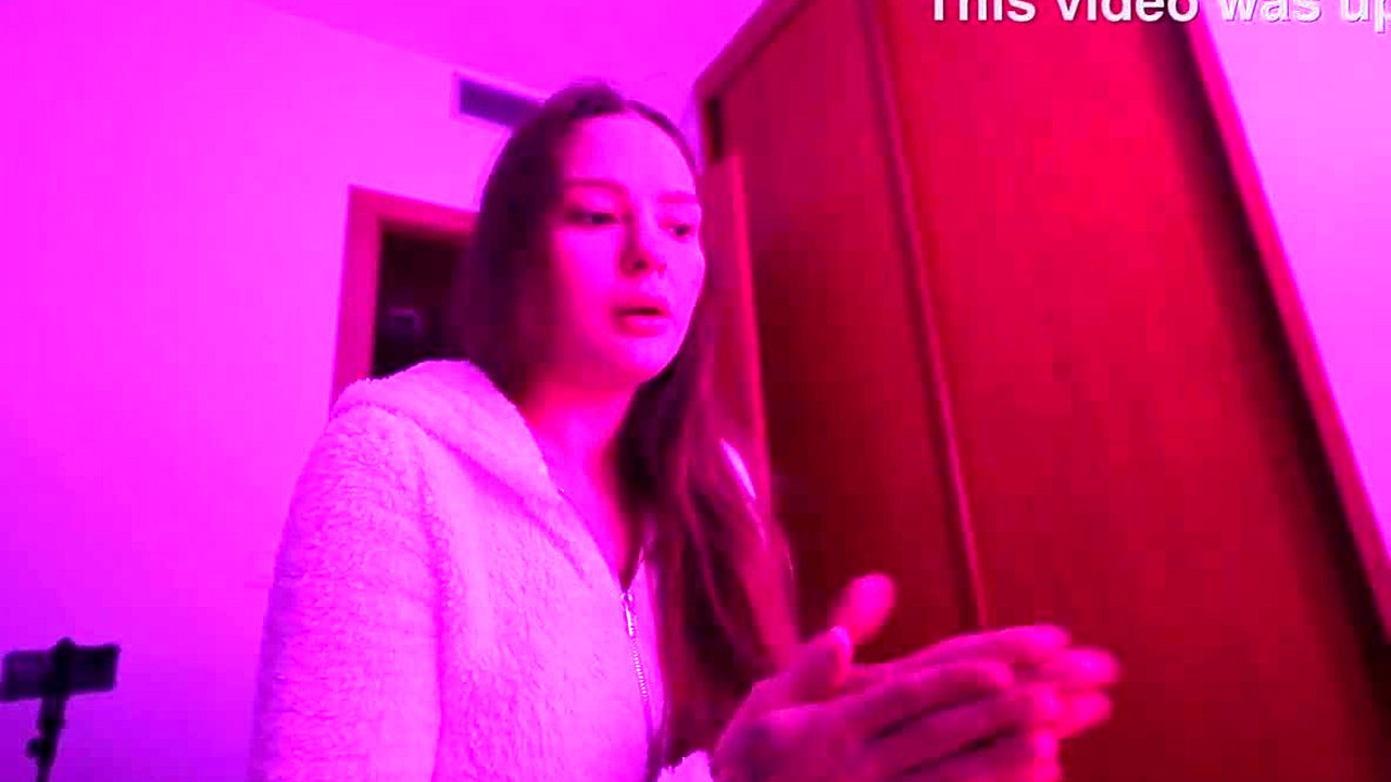 He finds her recording in underwear and fucks her in the room