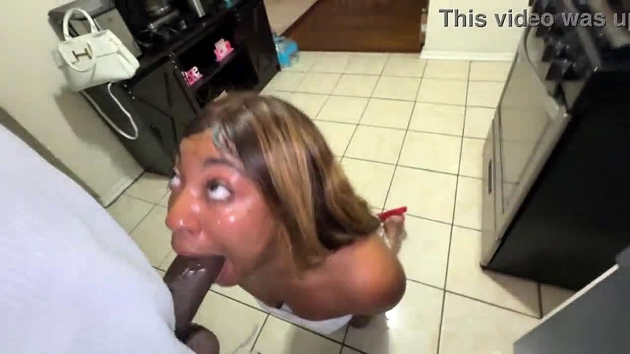 hotel throat-fuck ebony facial, sucking fat cock cum in mouth 😍