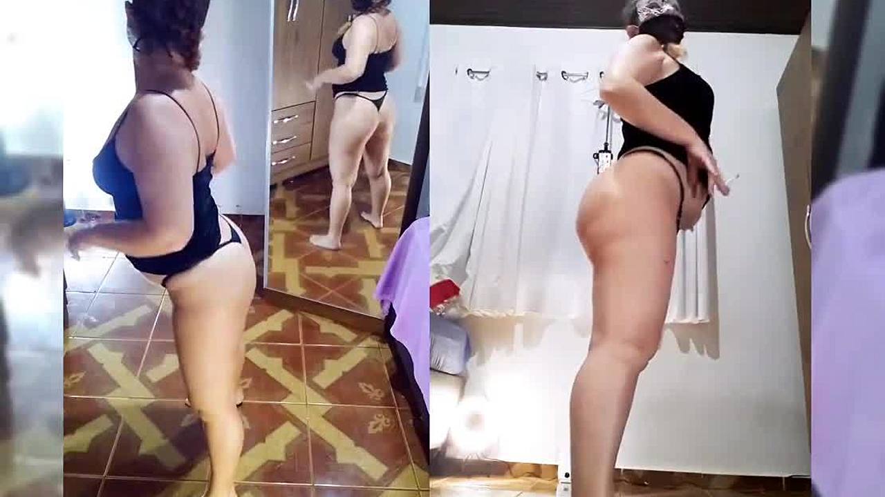 Curvy ladyboy masturbates sensually in lingerie, showing off her big tits and fat ass!